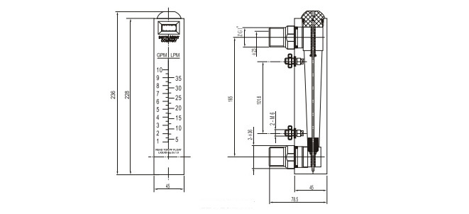 LZB-10 面(miàn)闆式流(liu)量計 | LZB-1001M | 0.1~1GPM/0.5~4LPM | 水 | 不帶(dai)閥 |