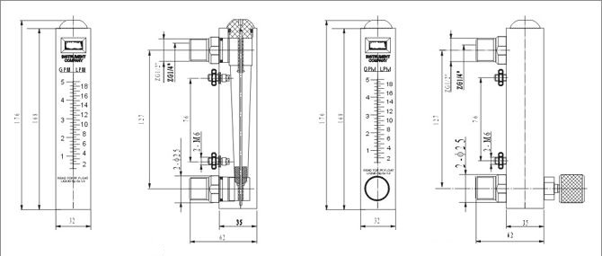 LZB-25 面闆(pǎn)式流量(liang)計 | LZB-2510M | 1~10 GPM/5~35LPM | 水 | 不帶閥(fa) |